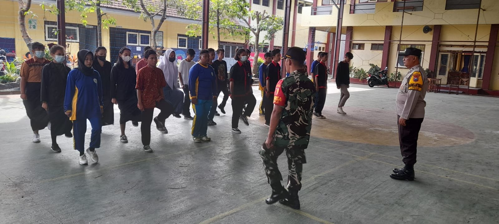Babinsa 0833/03 Kelurahan Bunulrejo, Koramil Blimbing, melaksanakan Pembinaan Karakter dengan memberikan pelatihan Peraturan Baris-Berbaris (PBB). Bertempat di SMK Tunas Bangsa, Kelurahan Bunulrejo, Kecamatan Blimbing Kota Malang, kegiatan ini di ikuti 30 orang peserta, Kamis (9/6/2022).