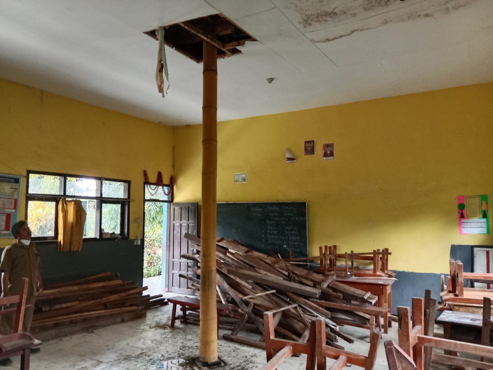 Kelas tiga tetap menggunakan ruangan kelas tiga dengan kondisi ruangan kelas atapnya ditonjok bambu, kelas dua pindah ke kelas satu dan siswa kelas satu dialihkan pembelajaran dekat ruangan mushola,