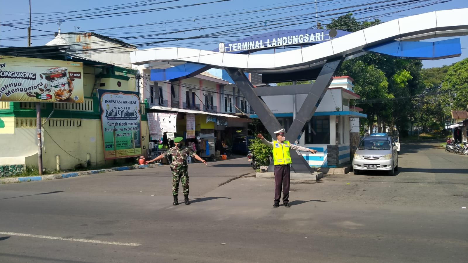 Babinsa 0833/Koramil 04 Lowokwaru, Kelurahan Tlogomas bersama Bhabinkamtibmas melaksanakan Pos Pam PMK. Bertempat di pos lantas Terminal Landungsari Kecamatan Lowokwaru/ Kota Malang- Selasa (21/6/2022).