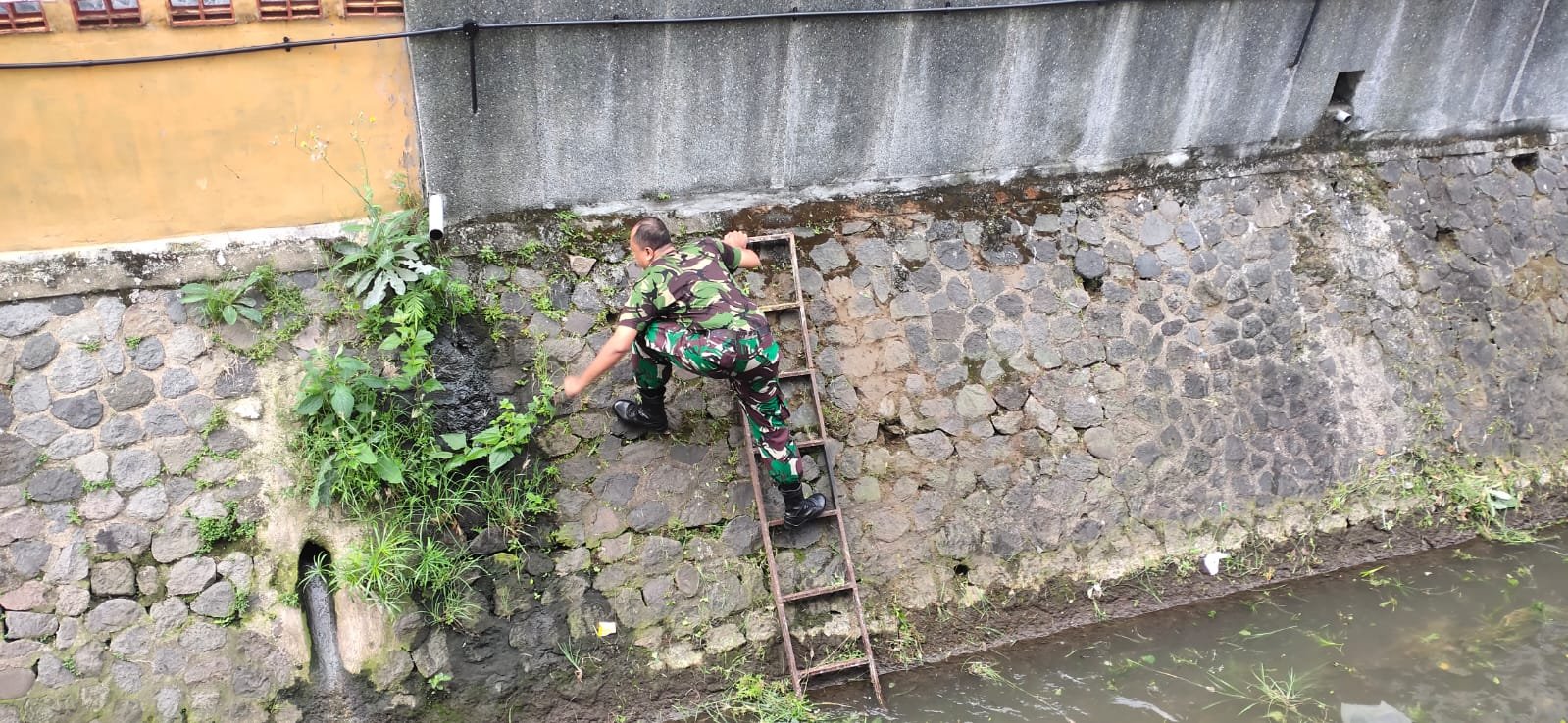 Babinsa Koramil 0833/01 Klojen Kelurahan Kauman Gotong Royong Bersihkan Sungai