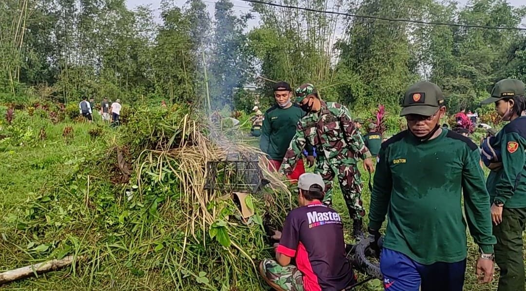 Babinsa Koramil 0833/02 Kedungkandang Kelurahan Bumiayu bersama-sama dengan warga melaksanakan karya bakti pembersihan tempat pemakaman umum (TPU) Kelurahan Bumiayu Kecamatan Kedungkandang Kota Malang, Jum’at (24/6/2022).