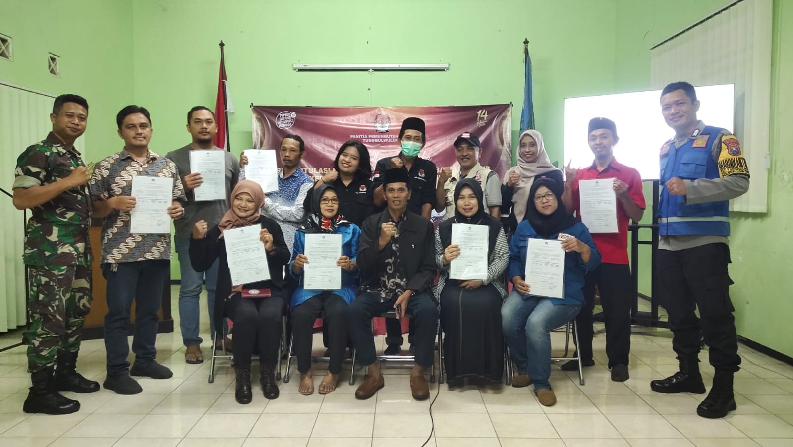 Hadir dalam kegiatan tersebut Lurah Tunggul Wulung Mokhamad Kairi, SE., Ketua PPS Tunggul Wulung Ridwan, PKD Ibu Sinta, Anggota PPS Ibu Ninda, Bhabinkamtibmas Tunggul Wulung Bripka Hutagaul, Babinsa Tunggul Wulung Serma Adi Priyo, Kasi Trantib Kelurahan Tunggul Wulung dan perwakilan masing-masing parpol di Kelurahan Tunggul Wulung.(Djoko W)