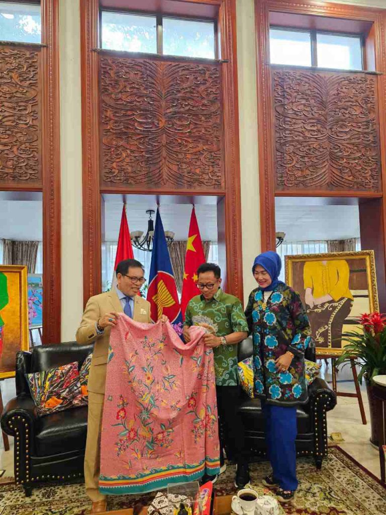 Malangpariwara.com – Dari Malang untuk Indonesia dan Dunia, Wali Kota Malang, Drs. H. Sutiaji dan Ketua Dekranasda Kota Malang, Widayati Sutiaji memperkenalkan produk-produk Usaha Mikro Kecil Menengah (UMKM) unggulan Kota Malang di Kedutaan Besar RI Beijing Republik Rakyat Tiongkok (RRT), Kamis (8/7/2023).
