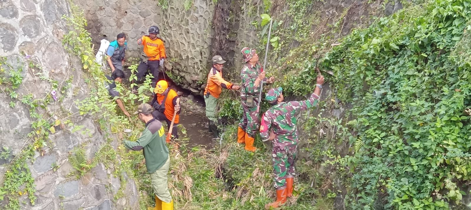Babinsa Koramil 0833/01 Klojen Bersinergi Bersama Warga Bersihkan Sungai di Kelurahan Bareng
