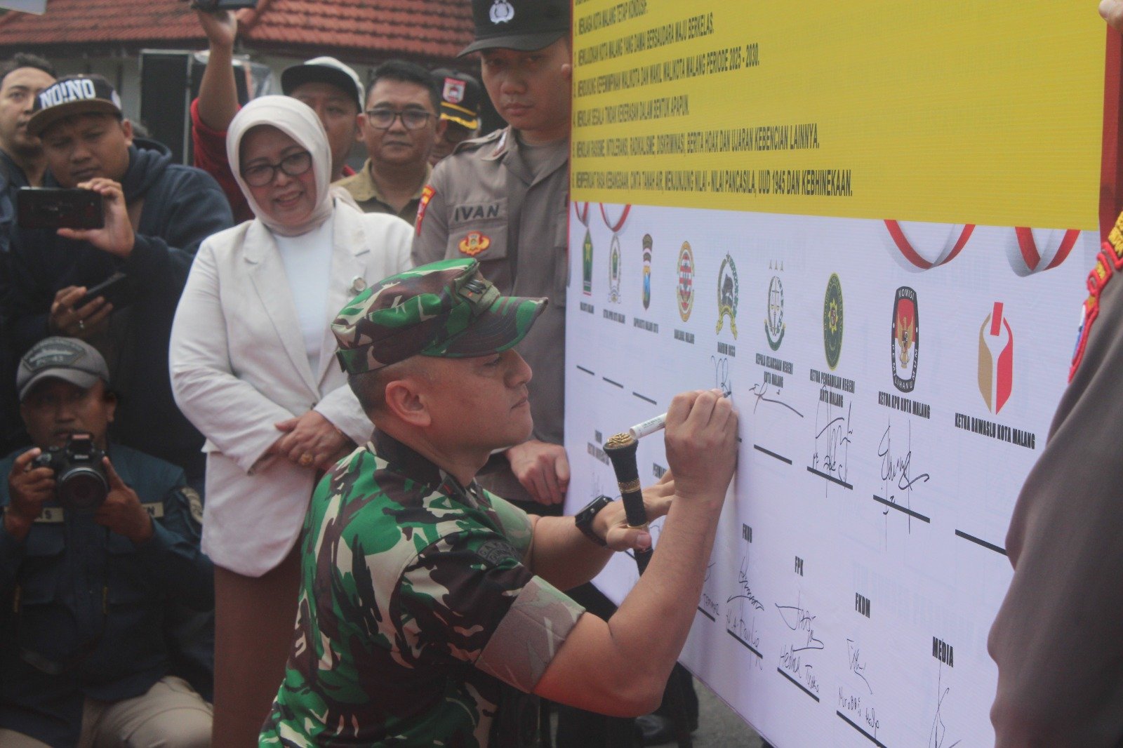 Kegiatan ini juga diisi dengan pembacaan deklarasi cipta kondisi menuju Kota Malang damai, yang berisi komitmen dari seluruh peserta untuk menjaga keamanan, ketertiban, dan kedamaian di Kota Malang.