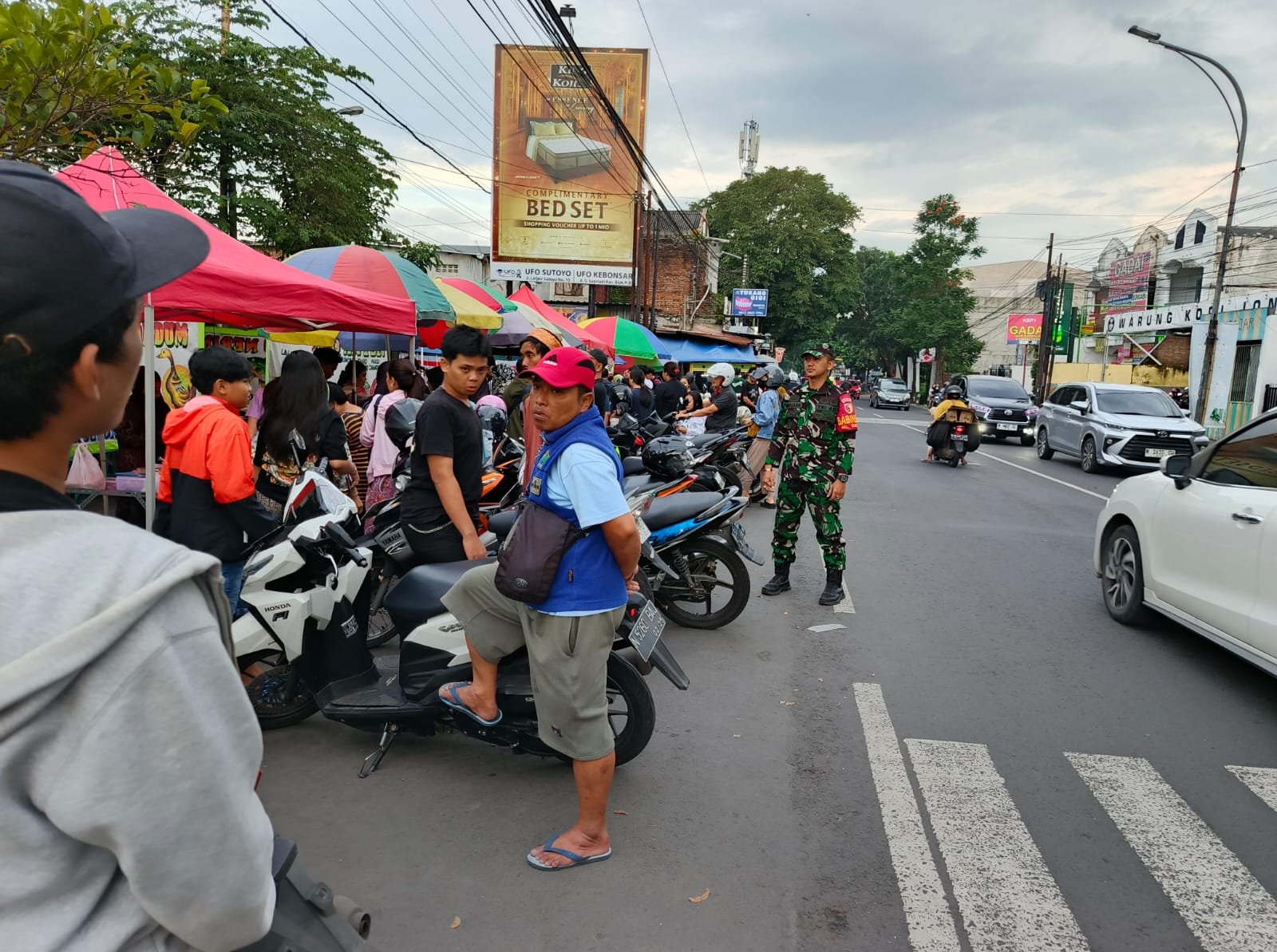 Jaga Kondusifitas Wilayah Babinsa Sukun Pantau Pasar Takjil Ramadan
