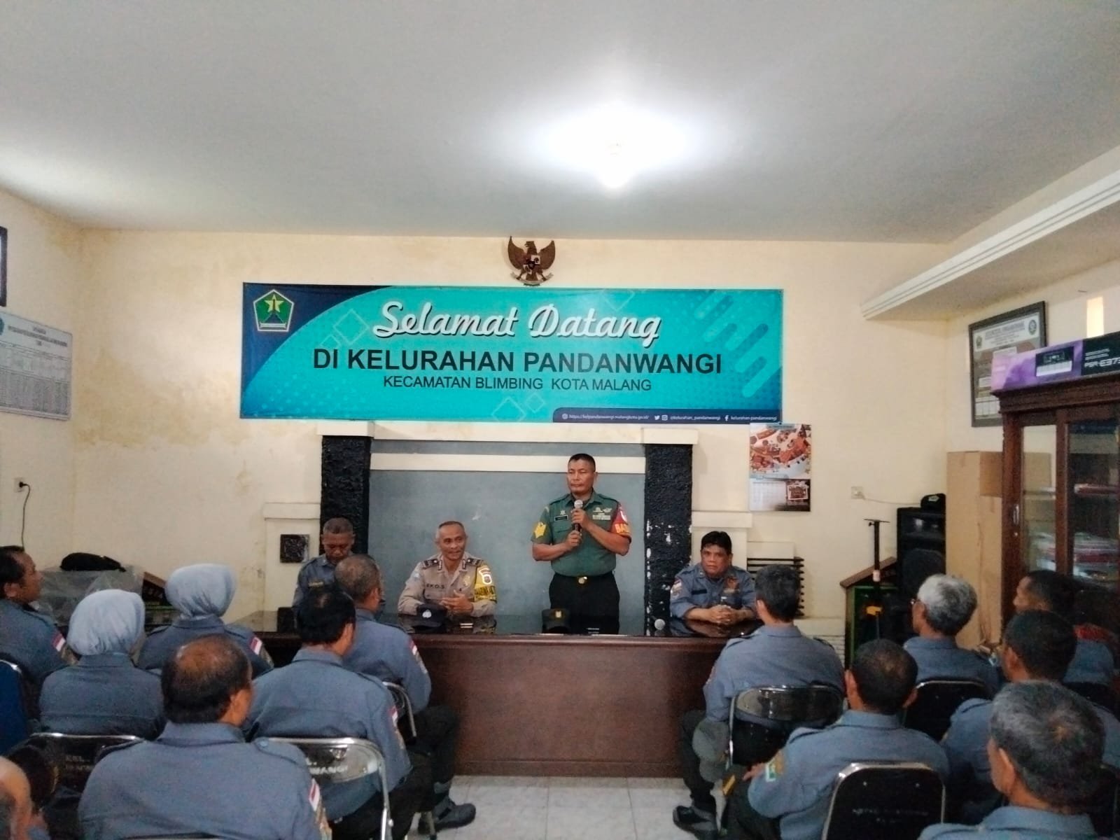 Malangpariwara.com – Babinsa Koramil 0833/03 Blimbing, Serma Suyitno, sampaikan materi pembinaan kedisiplinan kepada anggota Linmas.
