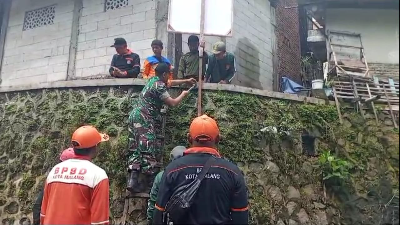 Malangpariwara.com – Babinsa Koramil 0833/02 Kedungkandang Kelurahan Mergosono Kota Malang, Kopda Munir bersama perangkat kelurahan dan warga setempat. Gotong royong memasang pamflet larangan membuang sampah di sepanjang Sungai Brantas, Kelurahan Mergosono, Minggu (9/3/2025).