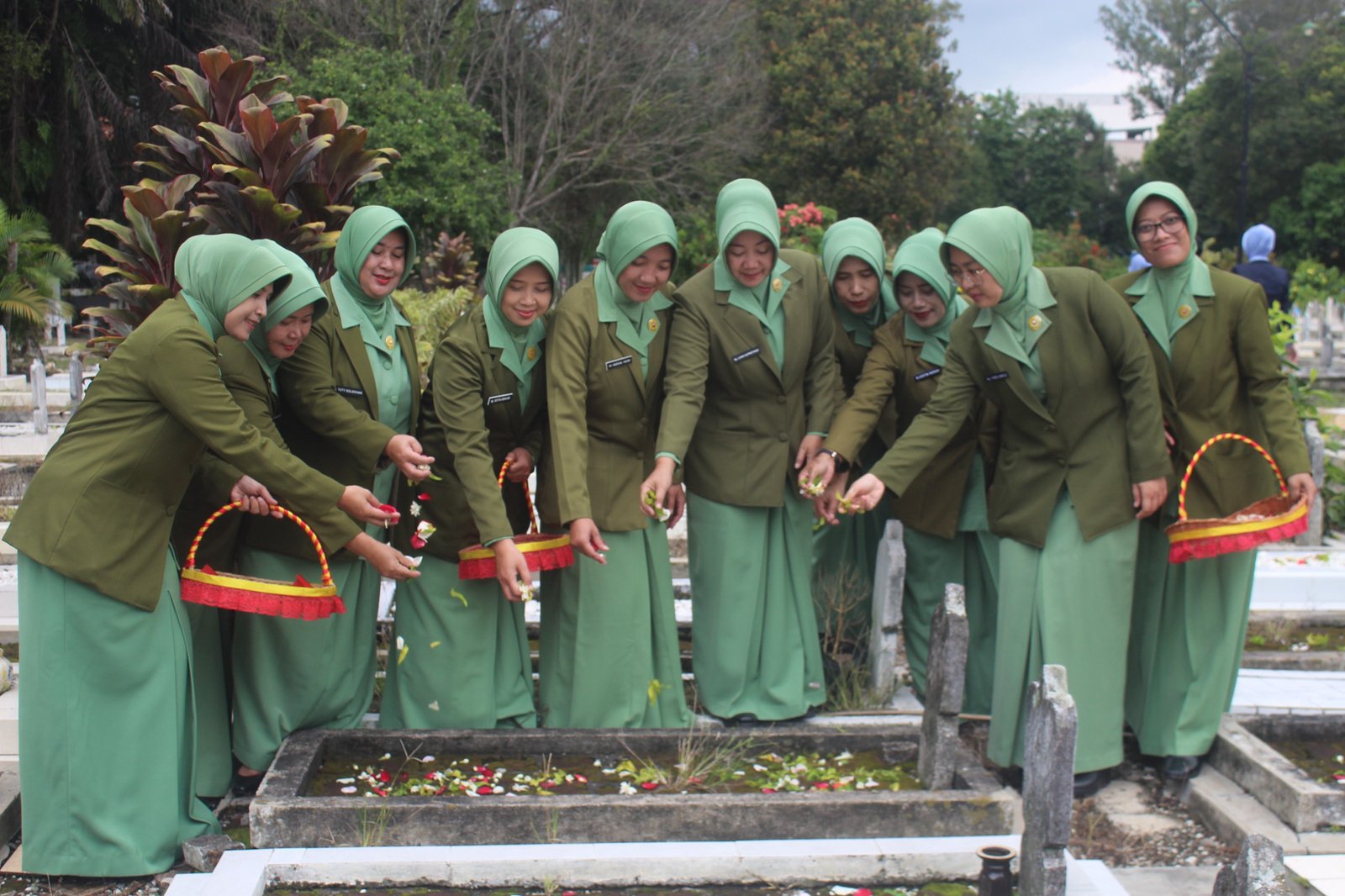 Kegiatan tabur bunga ini berlangsung khidmat dan penuh haru. Para peserta menaburkan bunga di pusara para pahlawan dan mendoakan arwah mereka.