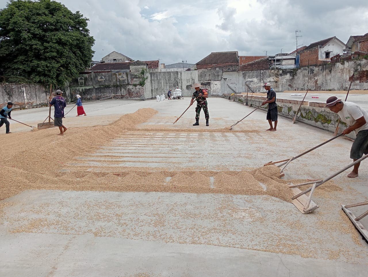 Kegiatan tersebut berlangsung di UD. Sumber Urip Kelurahan Buring, di mana Babinsa memberikan petunjuk mengenai teknik pengeringan yang tepat dan efisien. Proses pengeringan yang benar sangat penting untuk menghindari kerusakan pada gabah serta memastikan kadar air gabah mencapai standar yang diinginkan, sehingga dapat meningkatkan kualitas dan harga jual gabah.