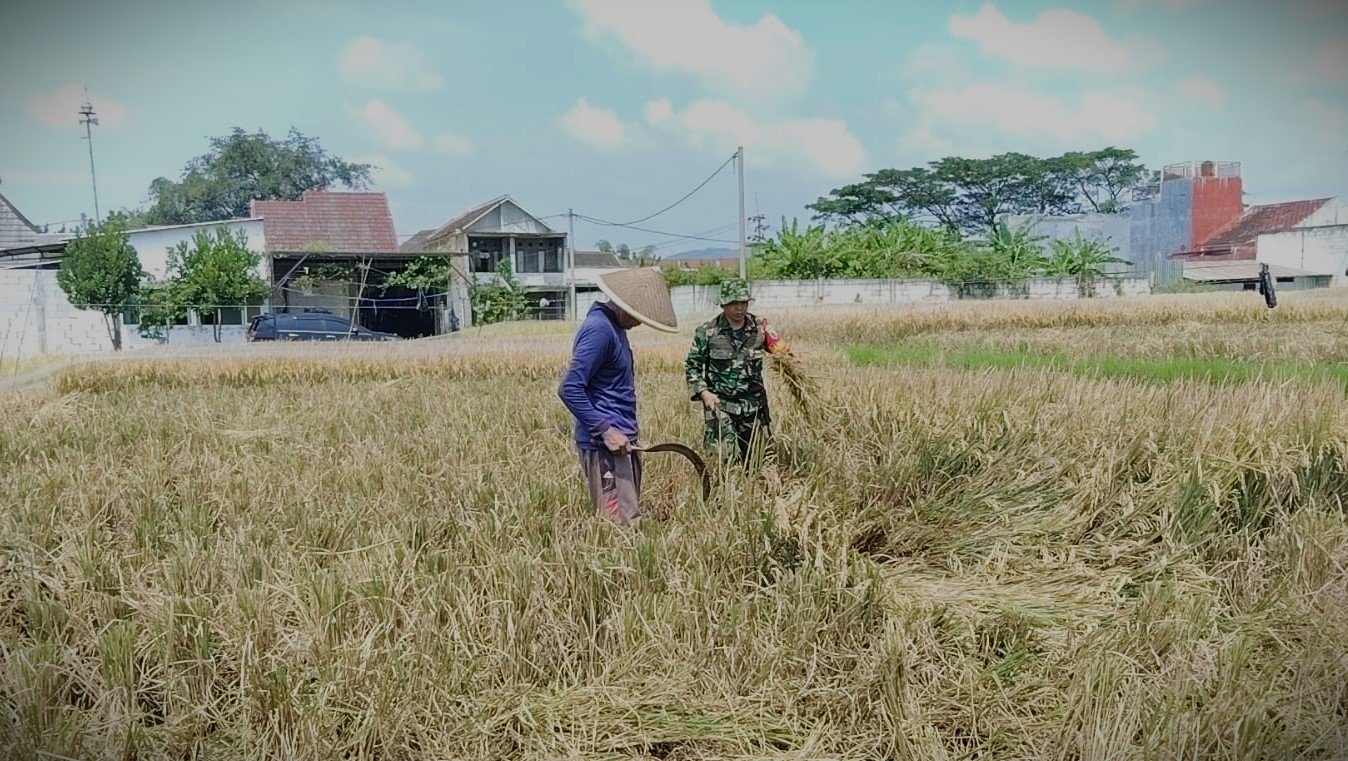 Babinsa Mulyorejo Serda Irul secara aktif mendampingi proses panen padi di wilayah binaannya. Kegiatan ini dilakukan untuk memastikan serapan gabah petani (Sergap) berjalan optimal dan menghasilkan gabah dengan kualitas tinggi.