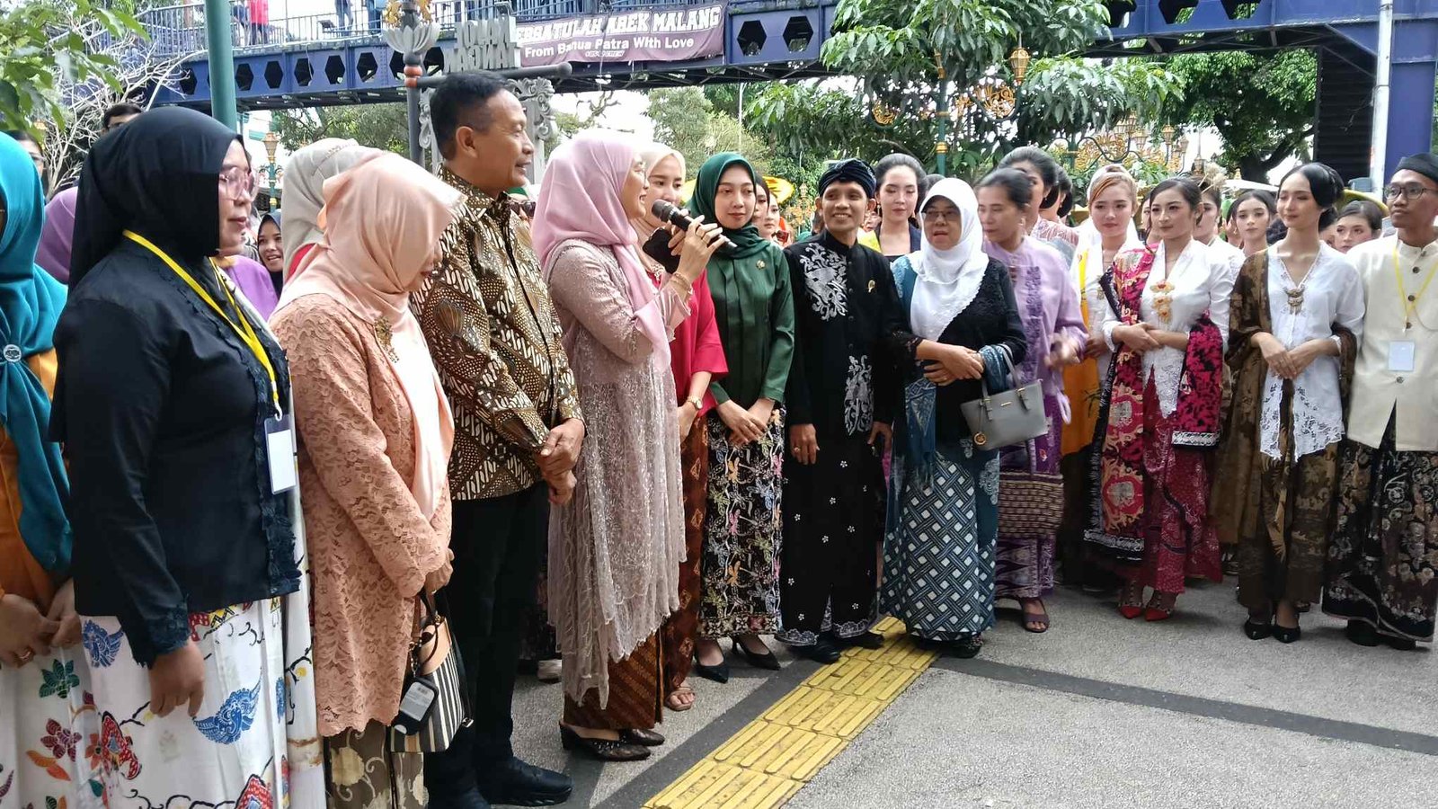 Ketua DPRD Kota Malang Amithya bersama ratusan perempuan menggunakan kebaya melakukan catwalk atau jalan parade.
