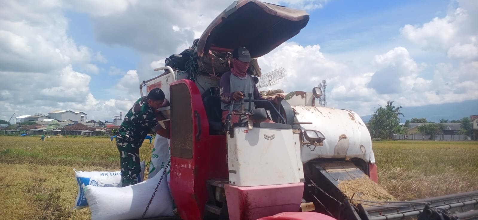 Malangpariwara.com – Babinsa Kebonsari, Serda Sulistiono aktif bantu petani panen padi di Jl. Kebonsari Rt. 05 Rw. 02 Kelurahan Kebonsari Kecamatan Sukun Kota Malang, Rabu (7/5/2025).