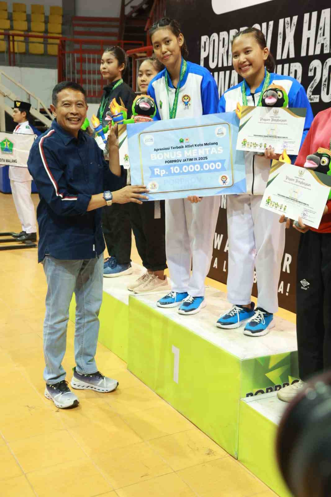 “Sebagai bentuk apresiasinya, para peraih medali emas akan langsung menerima bonus sebesar Rp10 juta ke rekening masing-masing hari ini juga” pungkas Walikota Wahyu.