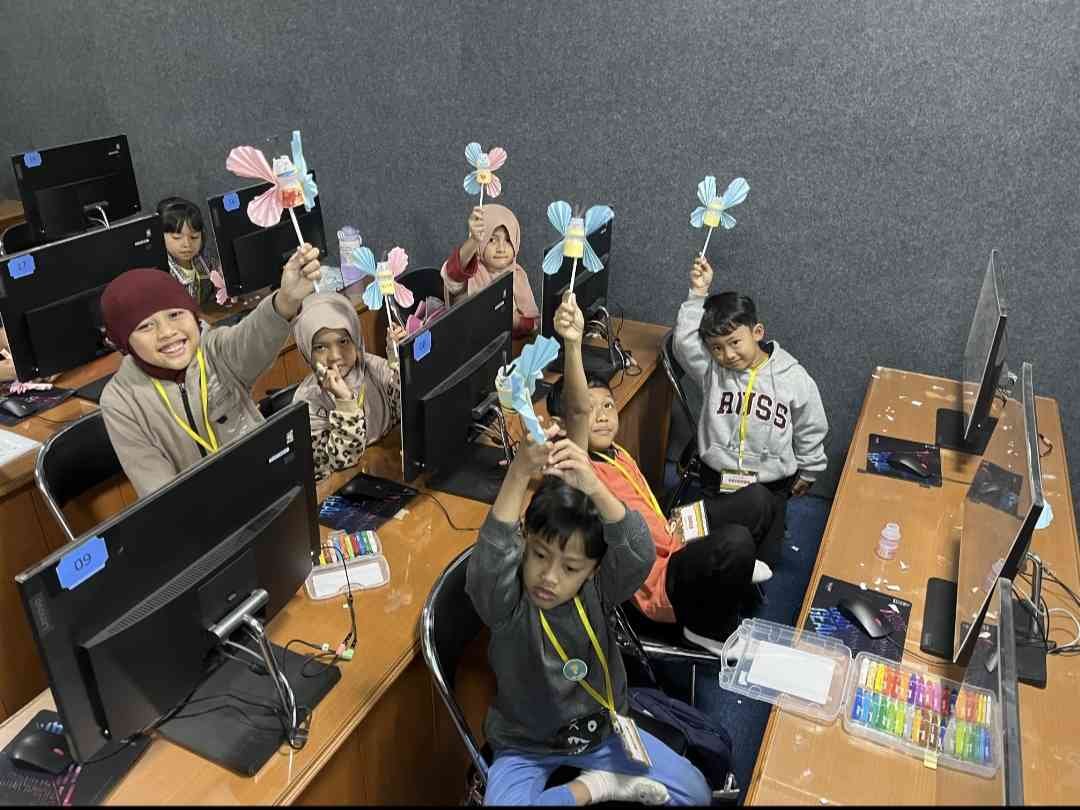 Puluhan siswa Sekolah Dasar (SD) bersenang-senang belajar bahasa Inggris di Kampus 3 UMM pada tanggal 11-15 Juli 2025.