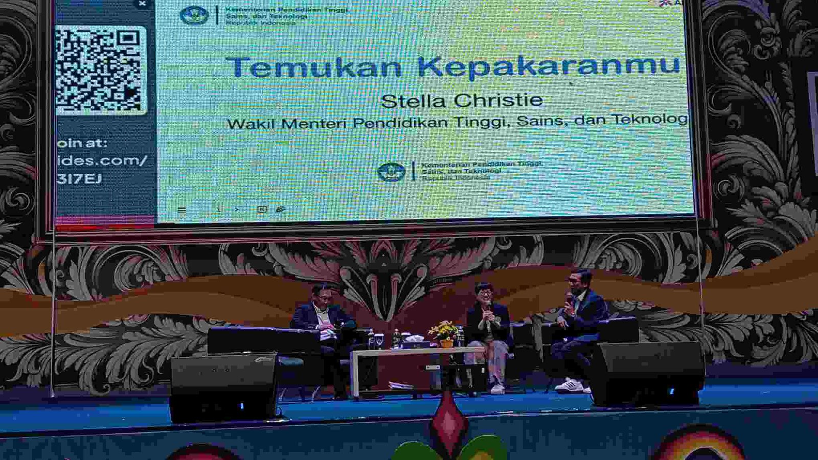 Dalam kuliah kebangsaan tersebut, Wakil Menteri Pendidikan Tinggi, Riset, dan Teknologi, Ibu Stella Christie, menekankan pentingnya peran mahasiswa dalam kegiatan riset.