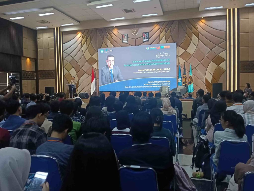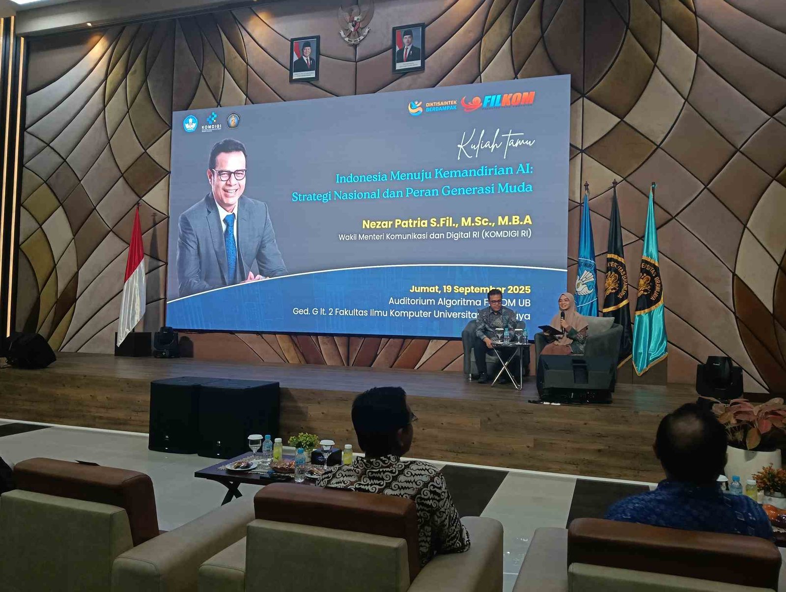 Hal demikian disampaikan secara langsung oleh Wakil Menteri Komunikasi dan Digital (Wamendigi), Nezar Patria, dalam kuliah tamu bertajuk Indonesia Menuju Kemandirian AI: Strategi Nasional dan Peran Generasi Muda, Jumat (19/9/2025). Di gedung lantai 2 Filkom UB.