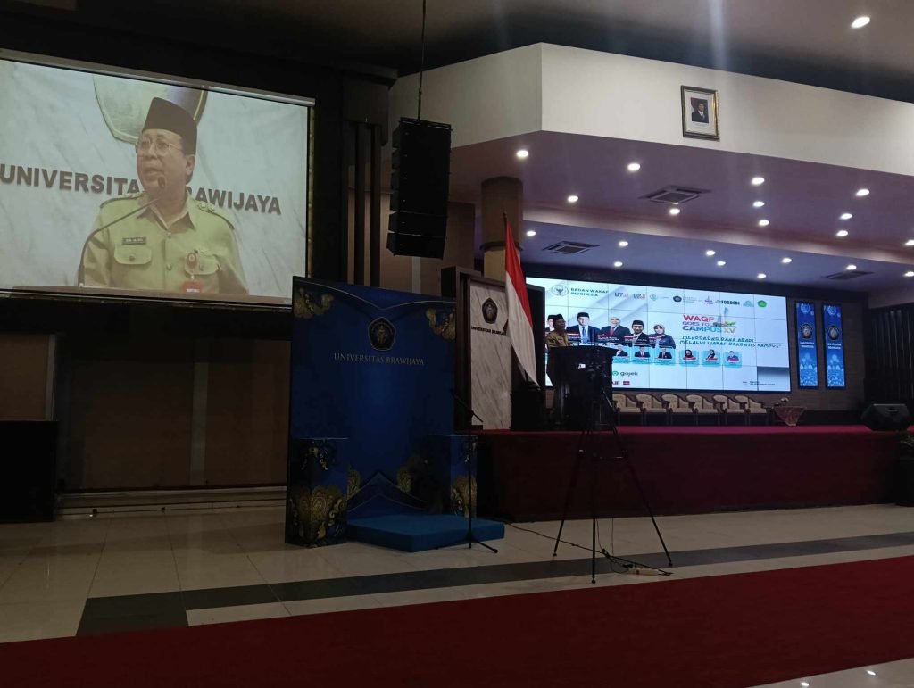Universitas Brawijaya (UB) menjadi tuan rumah WAQF Goes To Campus XV yang digelar Senin (20/10/2025). Agenda yang diprakarsai Badan Wakaf Indonesia (BWI) ini ditujukan mendorong terwujudnya dana abadi melalui wakaf produktif berbasis kampus.(Djoko W)