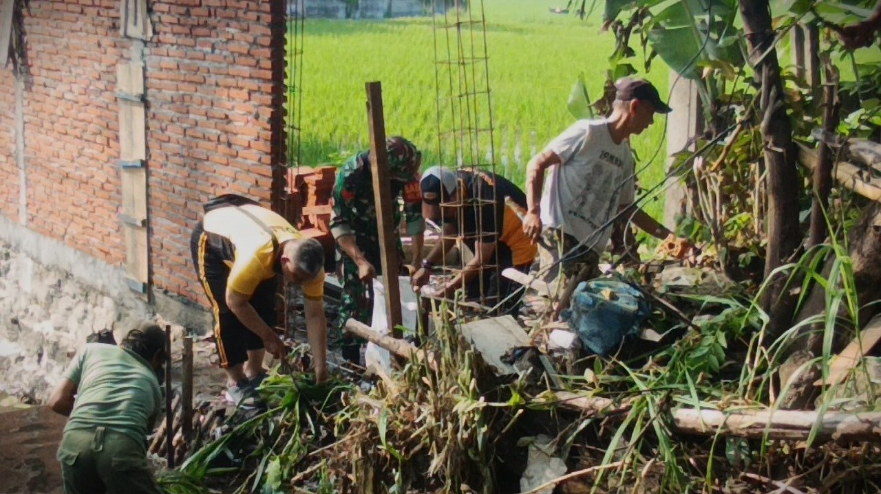 Kegiatan yang dipimpin langsung oleh Bati Tuud Koramil Blimbing Peltu Dimyati ini difokuskan pada pembersihan saluran air, pemangkasan rumput liar, dan pengangkatan sampah yang berpotensi menghambat aliran air di sekitar permukiman warga.
