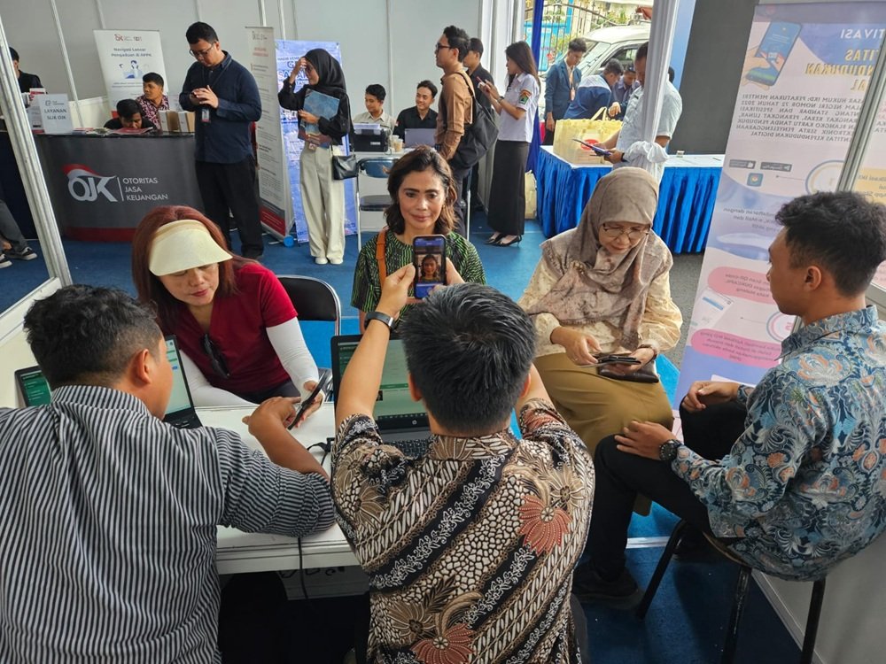 Petugas mengambil foto dalam proses mengaktifkan IKD lewat ponsel. (Djoko W)