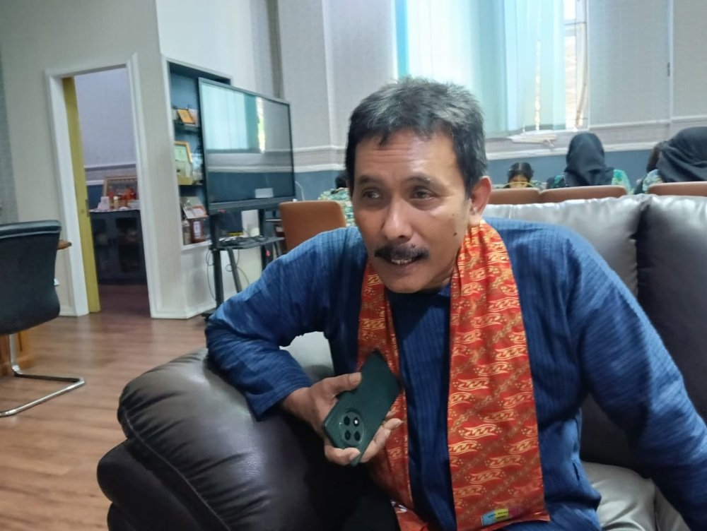 Kepala SMKN 4 Malang, Dr. Drs. Gunawan Dwiyono, saat sesi wawancara dengan awak media. (Djoko W)