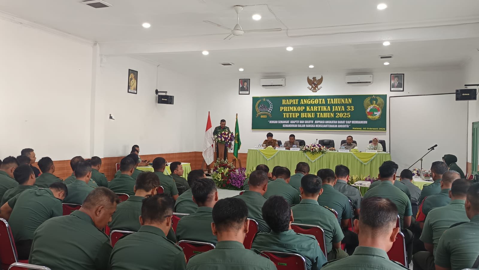 Malangpariwara.com – Kodim 0833/Kota Malang menggelar Rapat Anggota Tahunan (RAT) Koperasi Primkop Kartika Jaya 33 sebagai bentuk pertanggungjawaban pengurus kepada seluruh anggota sekaligus upaya mewujudkan transparansi dan peningkatan kesejahteraan prajurit serta PNS. Kegiatan tersebut berlangsung di aula Makodim 0833/Kota Malang, serta diikuti oleh jajaran anggota Primkop Kartika Jaya 33, Selasa, (03/02).