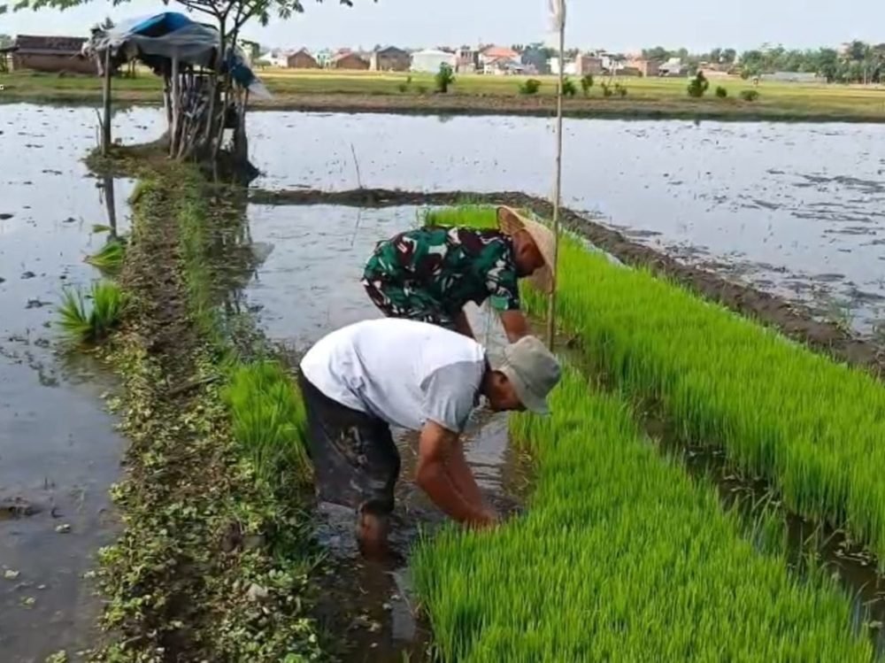 Perkuat Ketahanan Pangan, Babinsa Buring Dampingi Poktan Suka Maju Tanam Padi