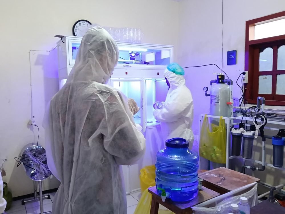 Ada yang membantu persiapan bahan makanan, memasak, mengemas nasi berkah, hingga mengisi dan mengemas MAC Water.